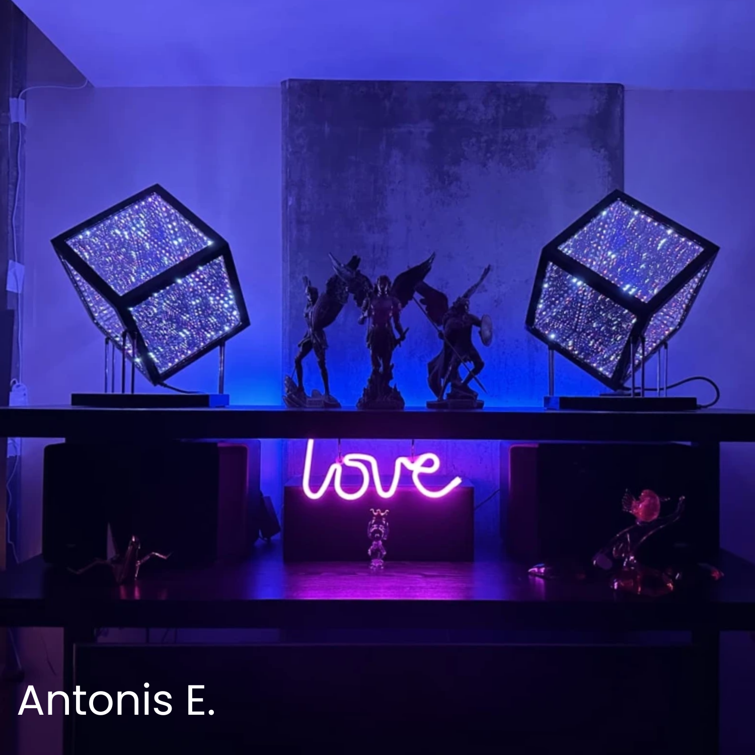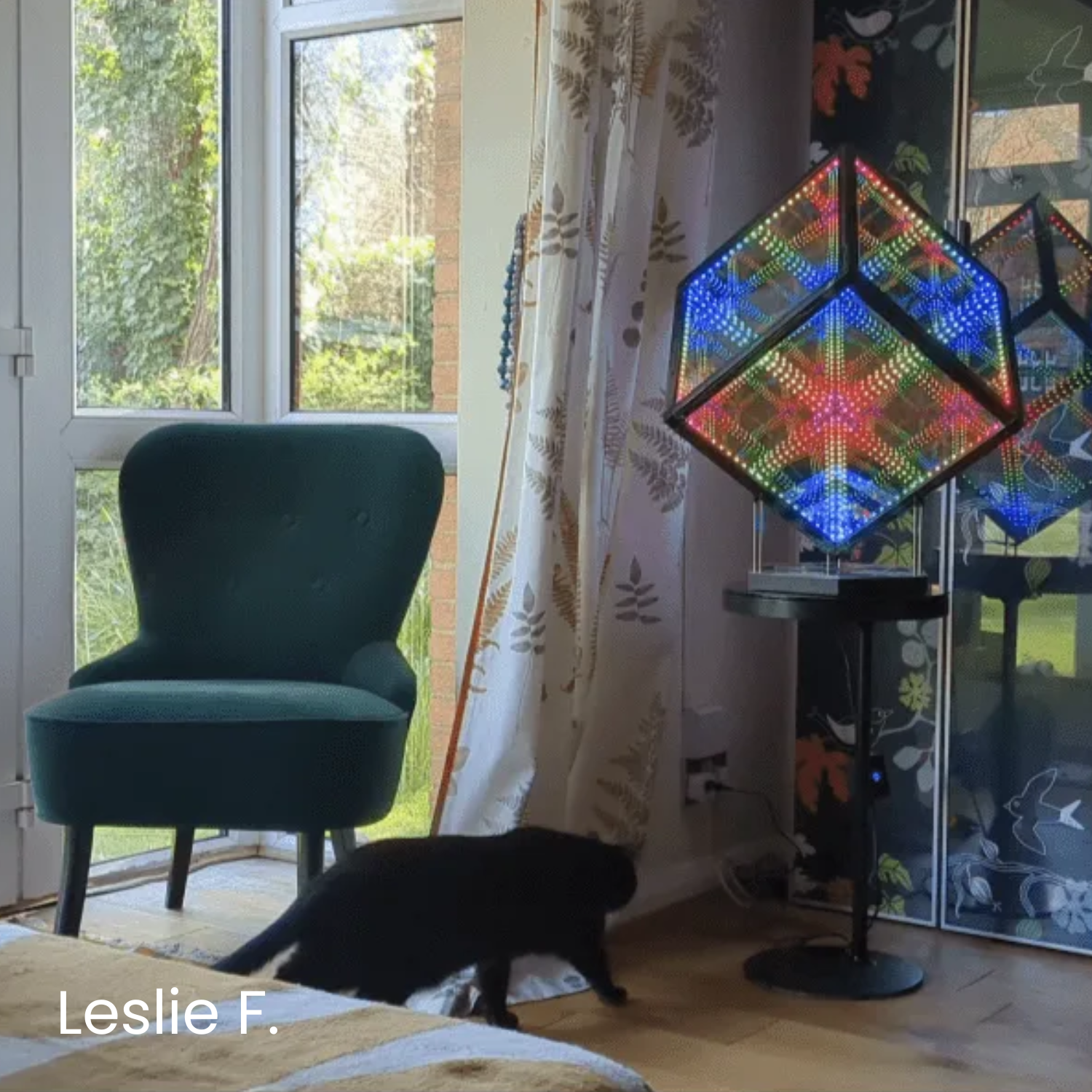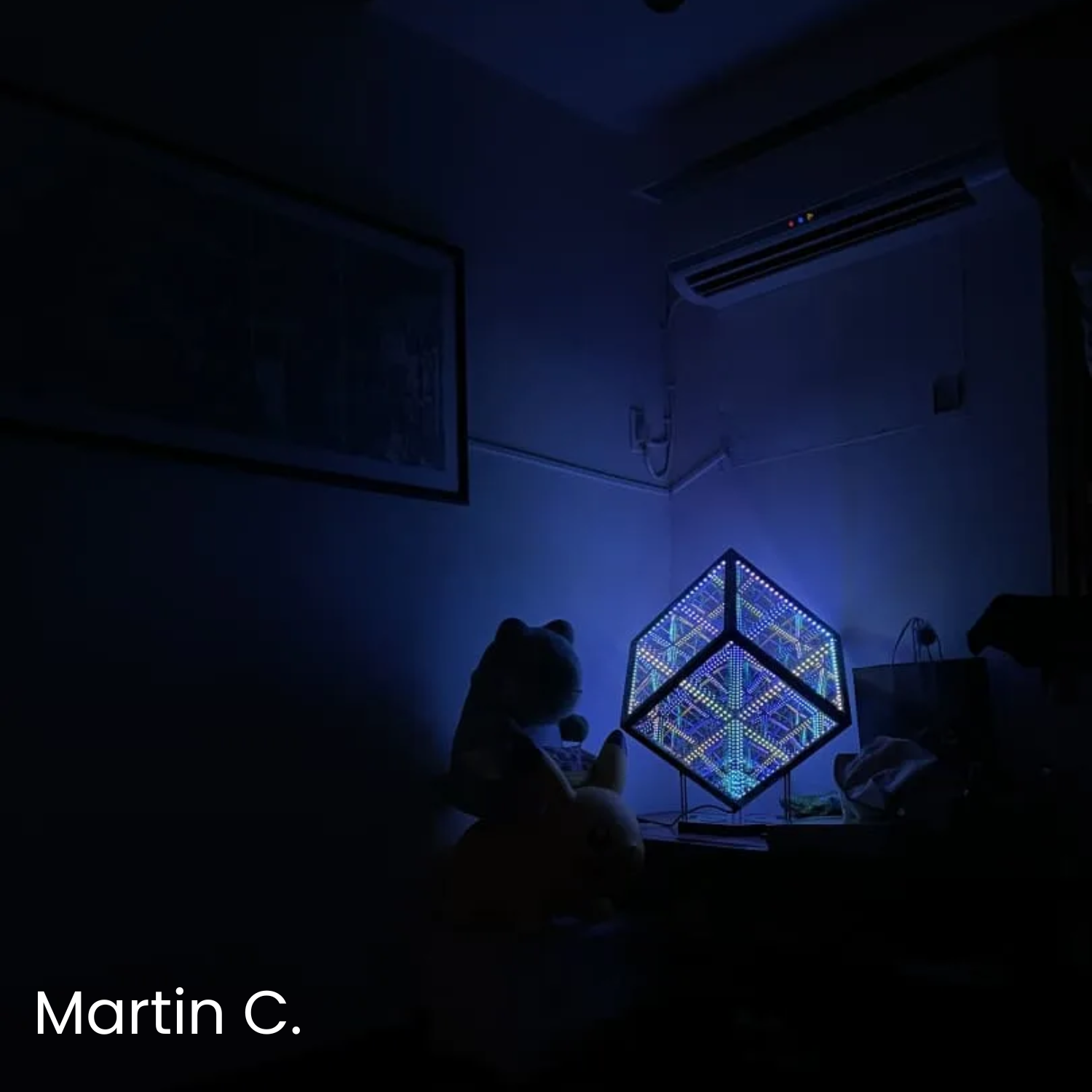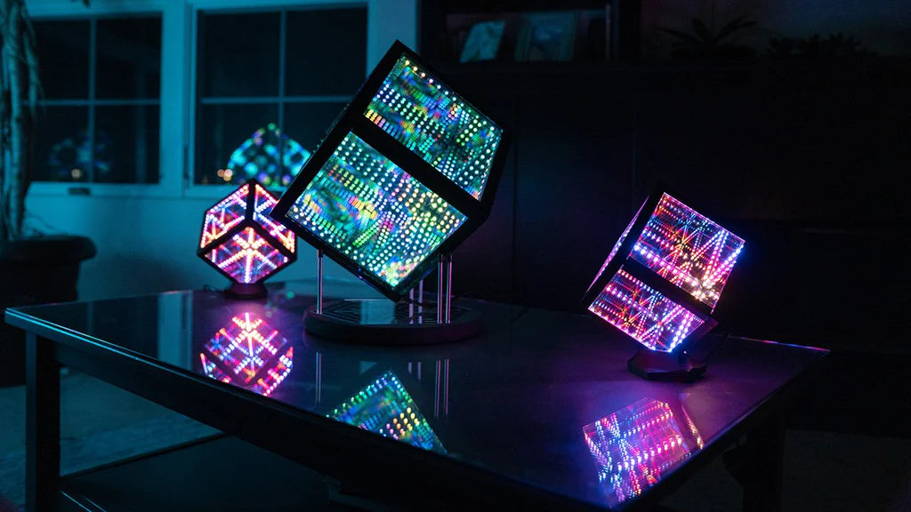 A: Once it’s powered on, the HeroCube immediately begins emitting light. By default, it runs in Kaleidoscopic mode, cycling to a new pattern every 60 seconds and shifting to fresh random colors every 10 seconds. You can switch patterns with a single press of the control box button, change modes with a double press, and hold the button for 2 seconds to turn the LEDs off. For deeper customization, connect through the app.