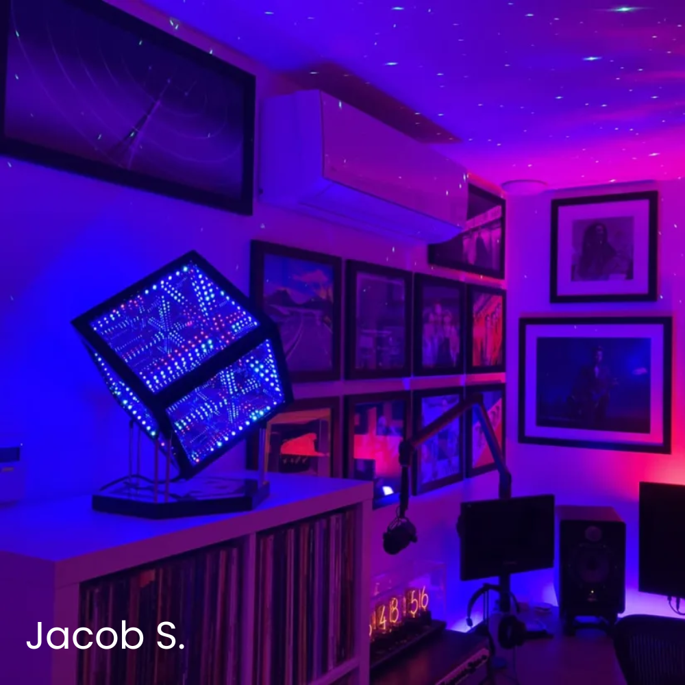 A: A built-in microphone in the control box captures sound, which is analyzed by our software. High, mid, and low frequencies are converted into synchronized lighting effects, producing an incredibly responsive lightshow that brings your music to life. In Sound Reactive mode, the HeroCube cycles through 31 unique patterns. Any other pattern can also be made sound-reactive by syncing its brightness to the beat via the app.
